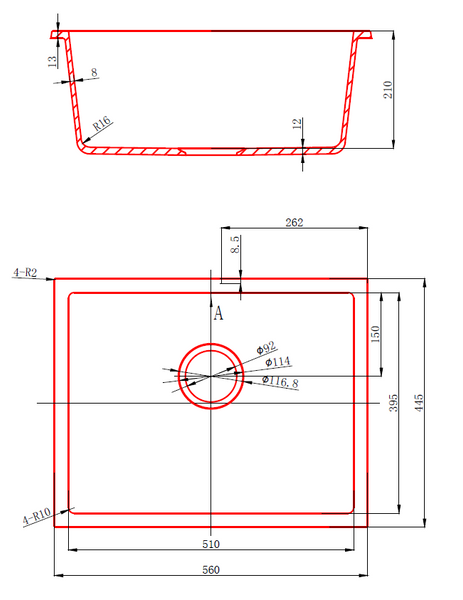 Single Bowl;Pyraganite; No pre-made tap Hole;Overflow basket waste included560mm x 440mm x 210